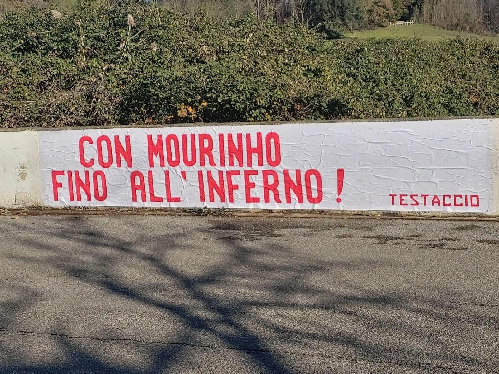 Este domingo en la mañana apareció en Trigoria una pancarta que no da pie a las dudas ni perplejidades: la afición de la Roma es compacta con José Mourinho.
