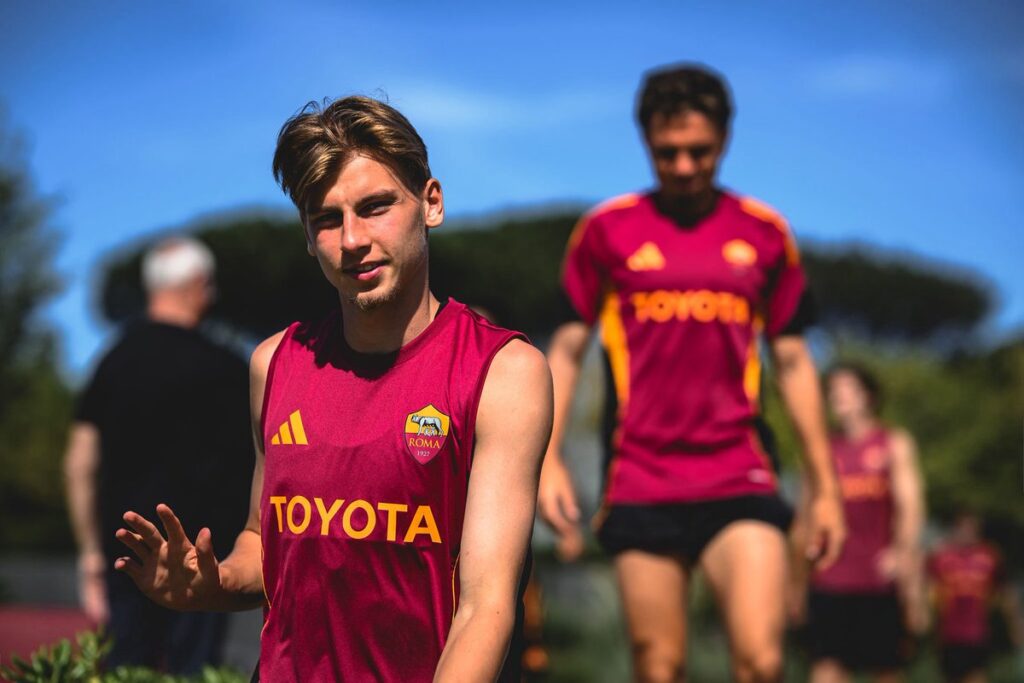 XI AS ROMA: Svilar; Mancini, Ndicka, Ziolkowski; Celik, Cristante, Koné, Wesley; Pellegrini; Soulé y Ferguson.