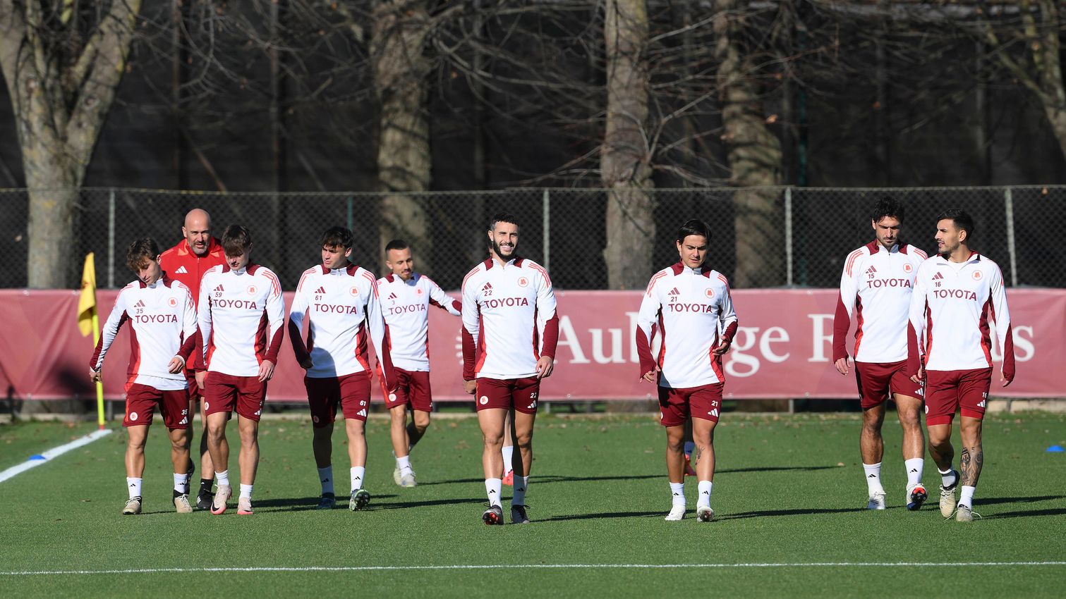 Entrenamiento de jueves en Trigoria; Hermoso vuele al trabajo con el grupo, ausentes Cristante y Dovbyk