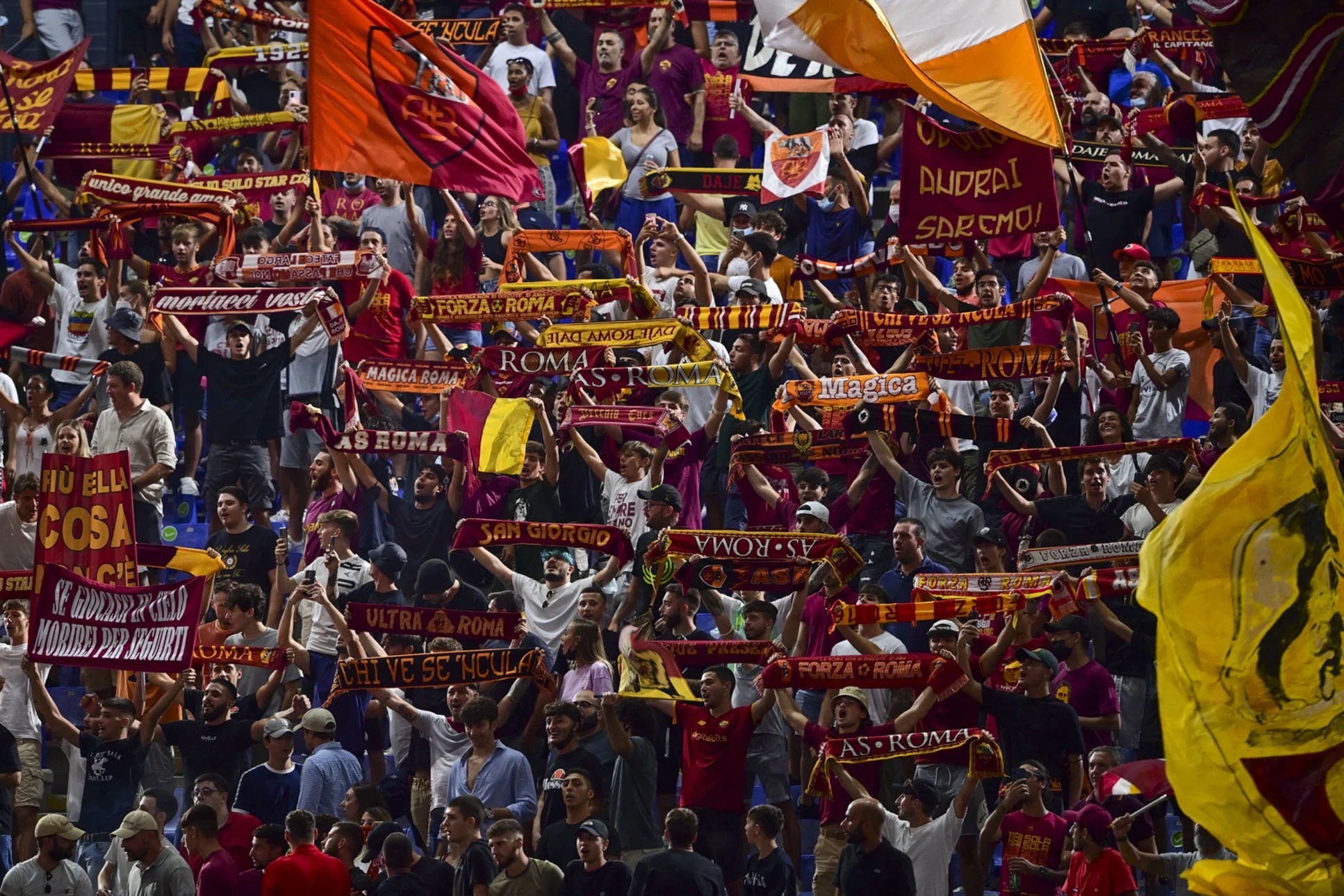 El Derby della Capitale esta a la vuelta de la esquina. Antes del gran partido, la Roma deberá enfrentarse dos veces en la Conference League al Vitesse y al Udinese por la Serie A, pero la fecha marcada en rojo en el calendario por la afición es el 20 de marzo, día del partido ante la Lazio. De hecho, el Olímpico está muy cerca de poner el cartel de Sold Out. Estarán presentes 44.000 aficionados, incluidos 9.000 de la Lazio que ocuparan el puesto ‘visitantes’. Los asientos disponibles para este último son 14.000 en total, mientras que el resto del estadio estará poblado por un mar de hinchas giallorossi. Los de Mourinho contarán con el máximo apoyo de los suyos para vengarse de la derrota sufrida en el partido de la ida. Una victoria no solo pondría más terreno entre los giallorossi y los vecinos de la ciudad, sino que sería un paso más para seguir pegado a la zona Champions.