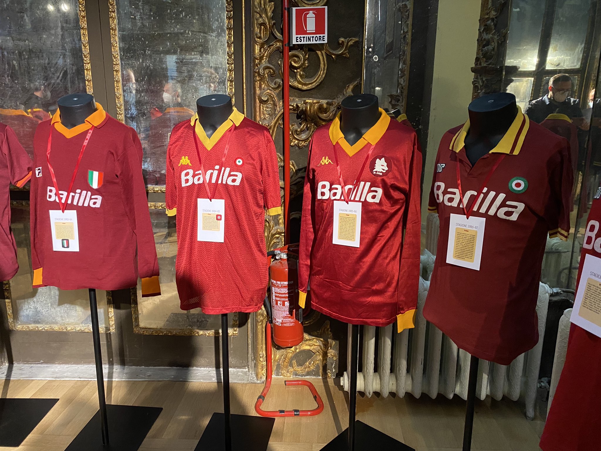 En total, habrá 101 camisetas para admirar y seguir, con leyendas descriptivas para aprender sobre su historia. En el Palazzo Brancaccio la jornada comenzó con la vigésimo segunda edición del “I Cavalieri della Roma – Premio Lino Cascioli” (en referencia al año 2020) y continuó, en presencia de la dirección y representantes del club, con la Inauguración de la exposición, todo ello con la máxima atención y cumplimiento de la normativa anti-Covid, con verificación del pase verde y detección de temperatura corporal antes de la entrada.