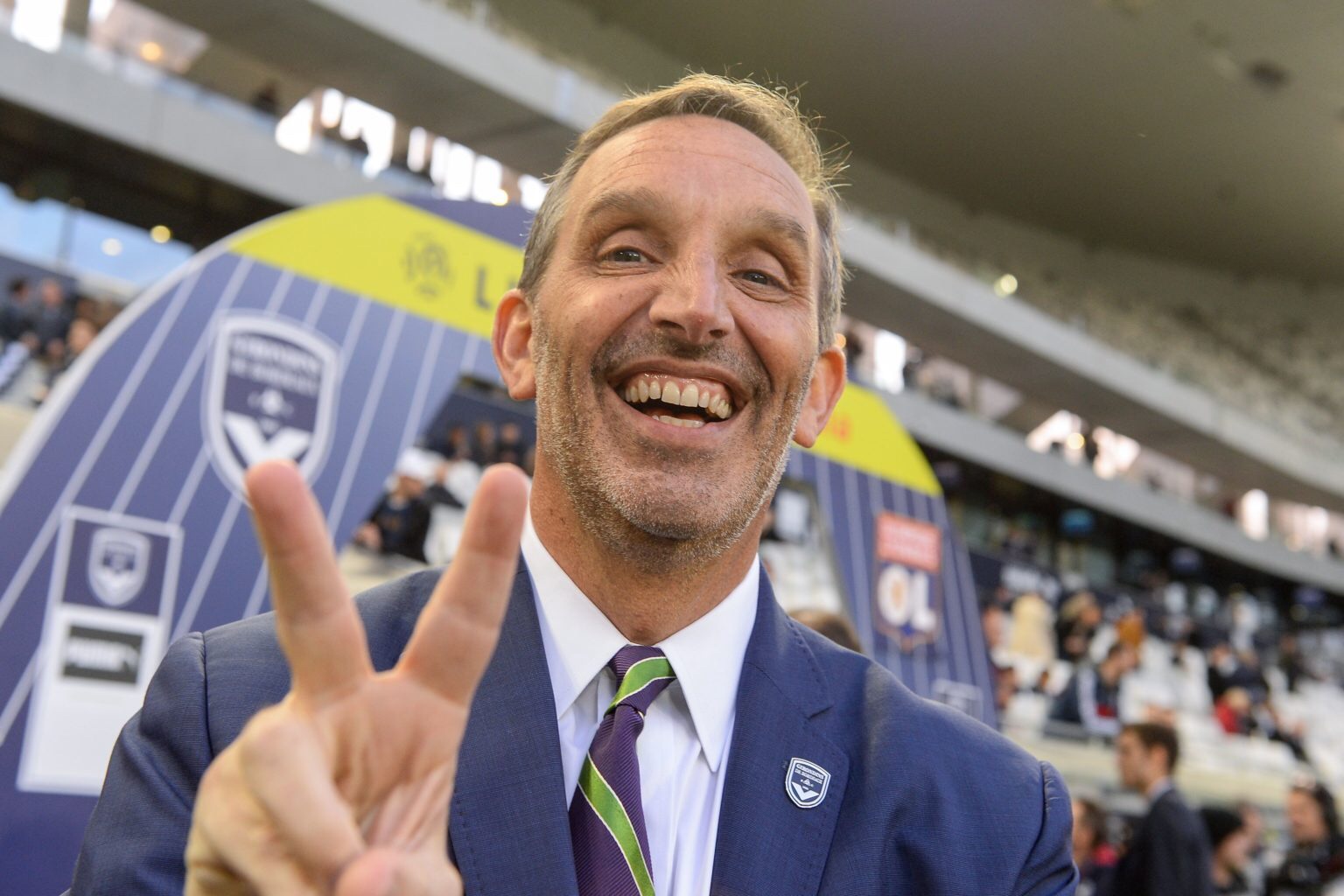 Bordeaux's American owner Joe DaGrosa gestures prior to the French L1 football match between Bordeaux (FCGB) and Lyon (OL) on April 26, 2019 at the Matmut Atlantique stadium in Bordeaux, southwestern France. (Photo by NICOLAS TUCAT / AFP) (Photo credit should read NICOLAS TUCAT/AFP via Getty Images)