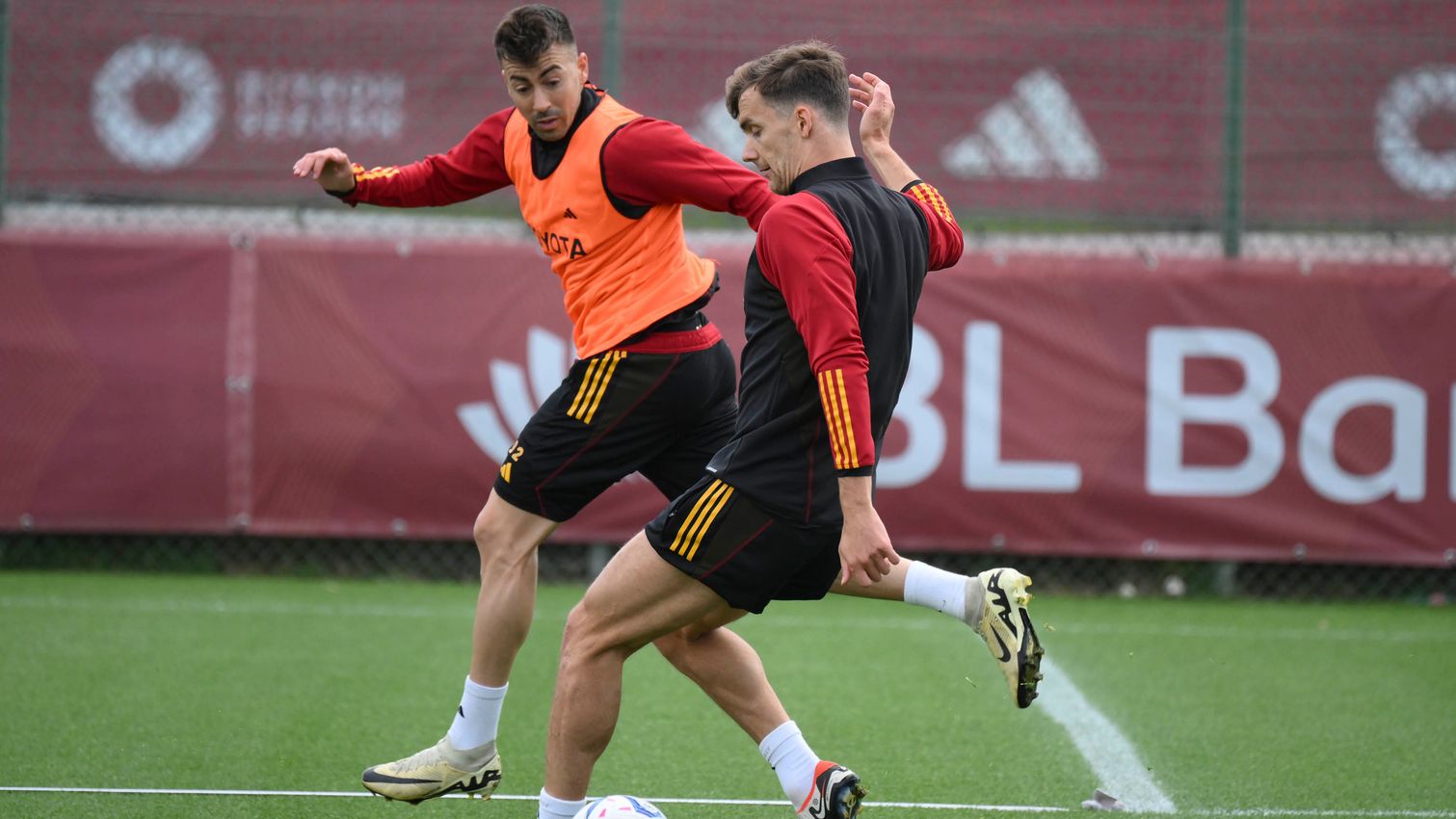 En las bandas: por la derecha Celik debería estar por delante de Karsdorp, mientras que por la izquierda Spinazzola, también disponible de nuevo, pareciera ser el favorito sobre Angeliño. De momento, por lo tanto la defensa más evidente será la compuesta por Celik, Mancini, Llorente y Spinazzola. Chris Smalling ha vuelto a entrenar a pleno rendimiento y a las convocatorias, pero utilizarlo para reemplazar al suspendido N’Dicka podría ser una apuesta arriesgada. A menos que De Rossi decida desplegar una defensa de tres, incluso en ese caso Huijsen estaría listo.