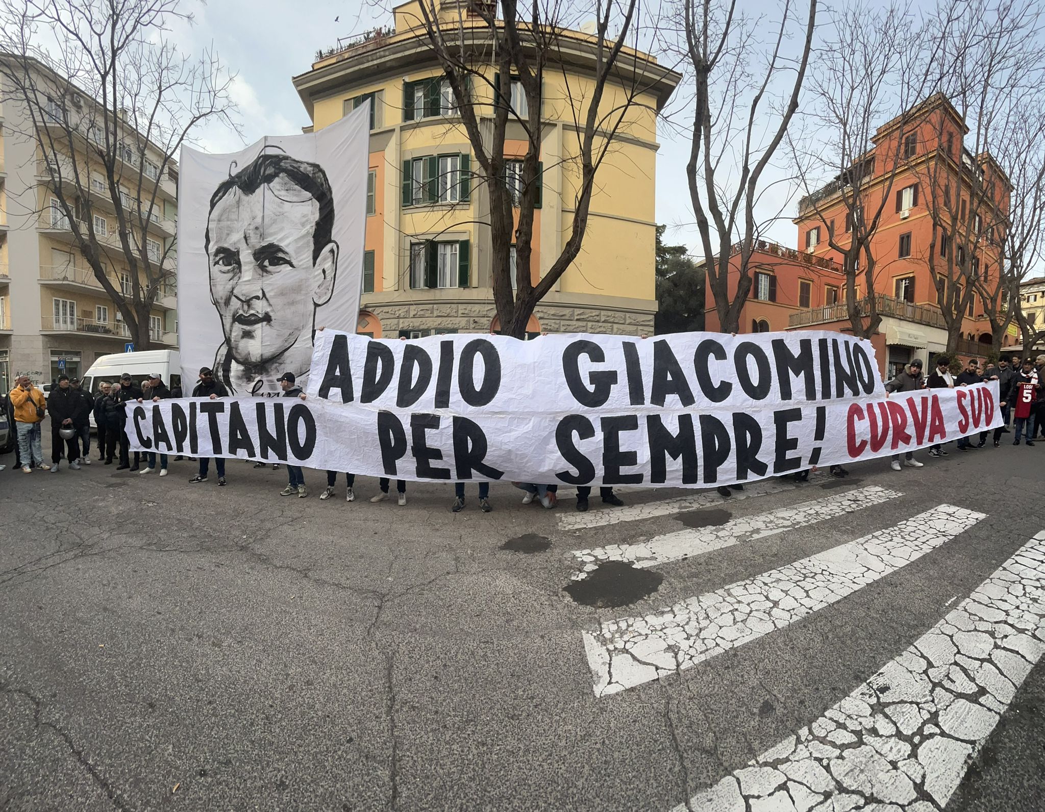 En un momento realmente emocionante, algunos chicos de la Curva Sud entregaron al hijo de Losi la pancarta que representaba a su padre utilizada en la coreografía del derby disputado el 11 de enero de 2015. En el exterior de la iglesia, se vio una gran pancarta que decía “Adiós Giacomino, el capitán para siempre” cuenta el diario Il Tempo.