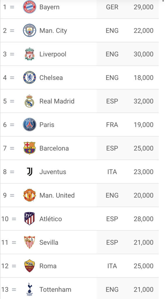 Con el Bayern manteniendo un año más el cajón más alto del ranking, la Roma finaliza esta primera parte de la temporada en el duodécimo puesto, 4 puestos por detrás de la Juventus, primer equipo italiano según este ranking.