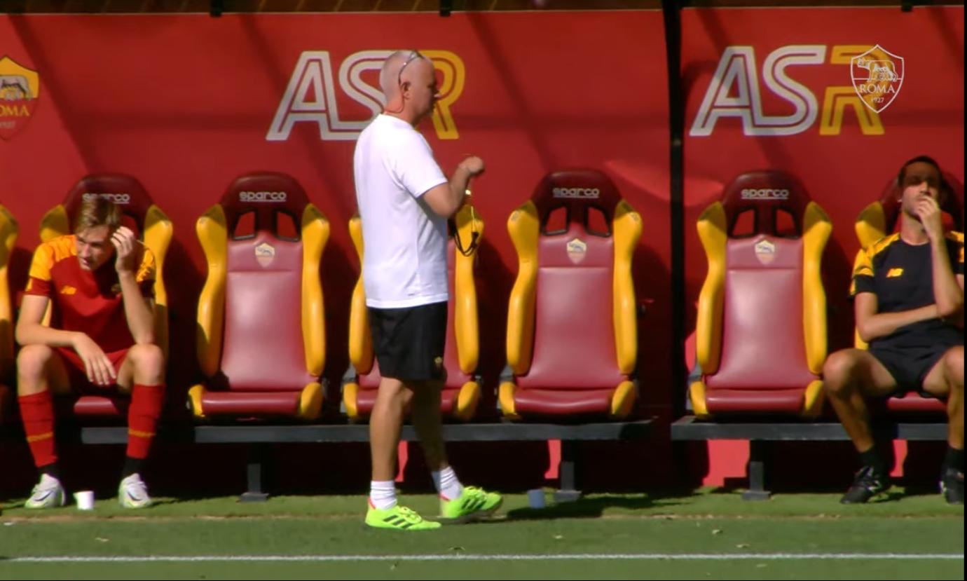 Spinazzola también estuvo fuera para una sesión de entrenamiento individual programada. Mourinho vuelve a probar la defensa de cuatro. Lo hizo en la primera parte desplegando a Smalling, capitán y en el centro del departamento, con Zalewski y Karsodrp en las bandas. En el centro del campo, en cambio, espacio para los jóvenes con Bove, flanqueado por Veretout, además desde el banquillo entre Faticanti (titular) y Tahirovic, que ocupó su lugar en la segunda parte. En ausencia de Abraham, Felix Afena-Gyan y no Eldor Shomurodov lideró el ataque de los giallorossi, con ElShaarawy y Carles Pérez apoyándole.