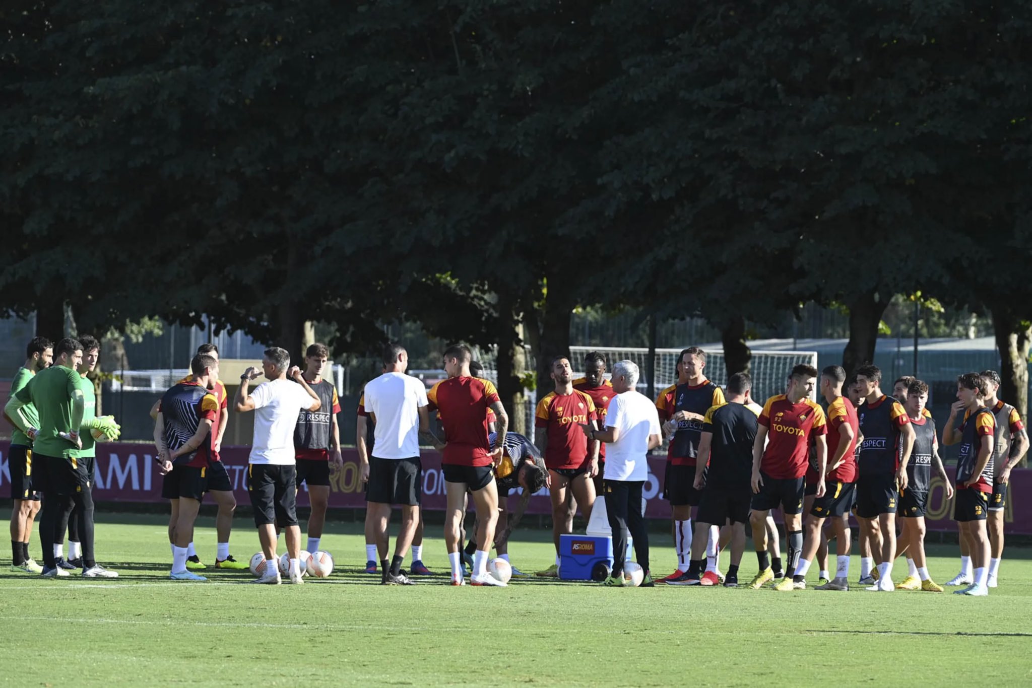 Entre los primeros en llegar estuvieron Pellegrini, Mancini y Smalling que fueron recibidos por un pequeño grupo de hinchas. También se presentaron Spinazzola, Zaniolo, Camara y El Shaarawy que llegaron al unísono. Luego llegaron Darboe e Ibañez.