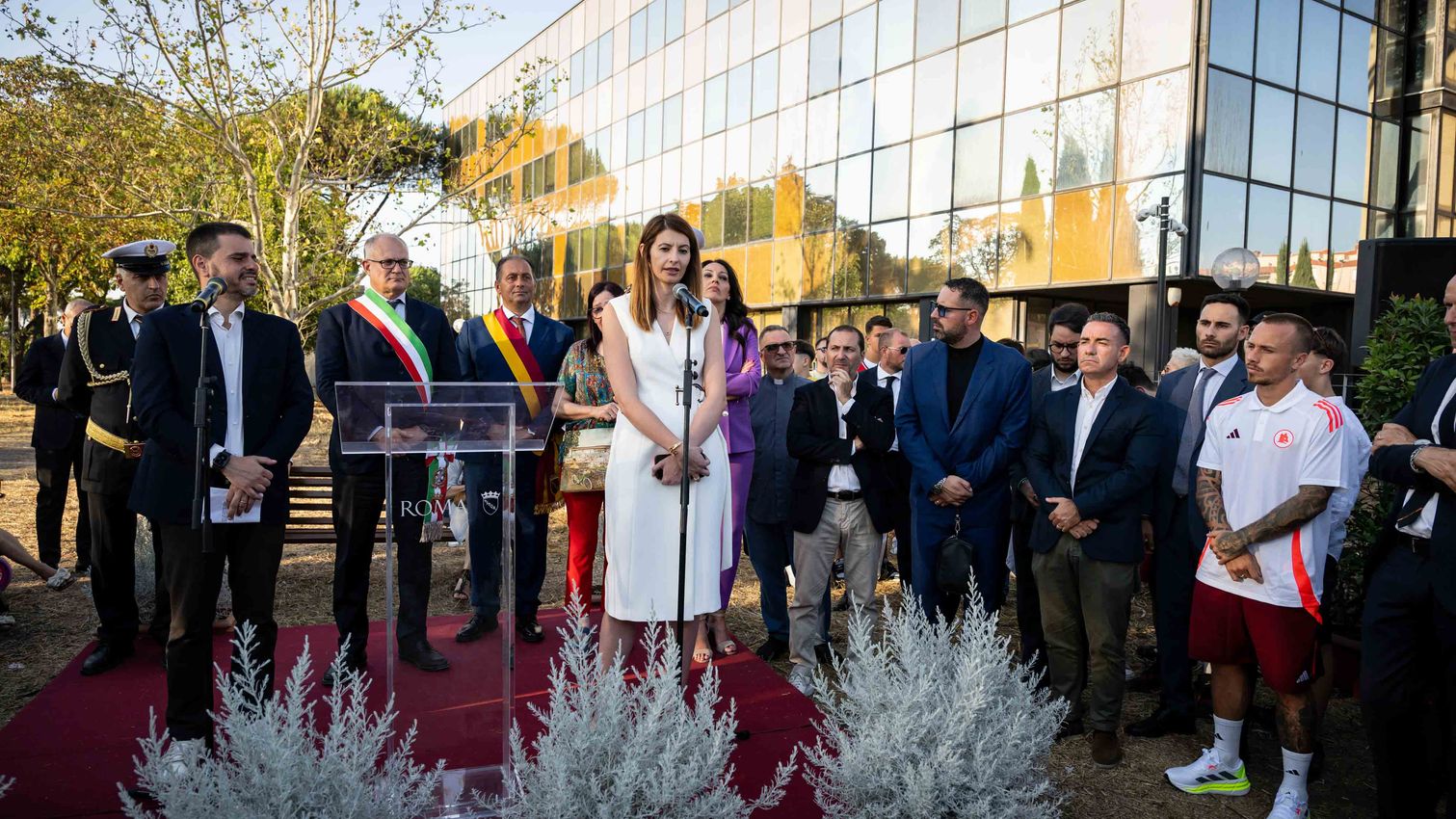 Lina Souloukou asistió a la ceremonia de inauguración del parque en memoria de Antonio De Falchi. Al finalizar el acto, el director general de Roma realizó unas declaraciones hablando de la importancia de la nueva zona.