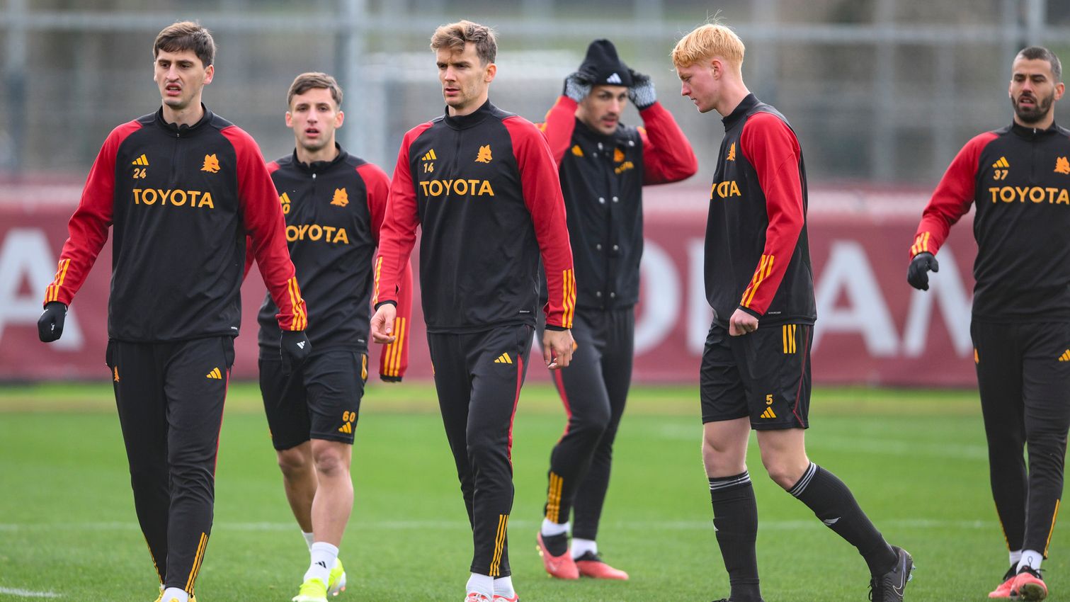 Quien no se ve en las imágenes compartidas por el club del entrenamiento de este martes es Lorenzo Pellegrini. De hecho, el capitán será sometido a controles por el golpe sufrido en la espalda en el choque con Scalvini durante el Roma-Atalanta.