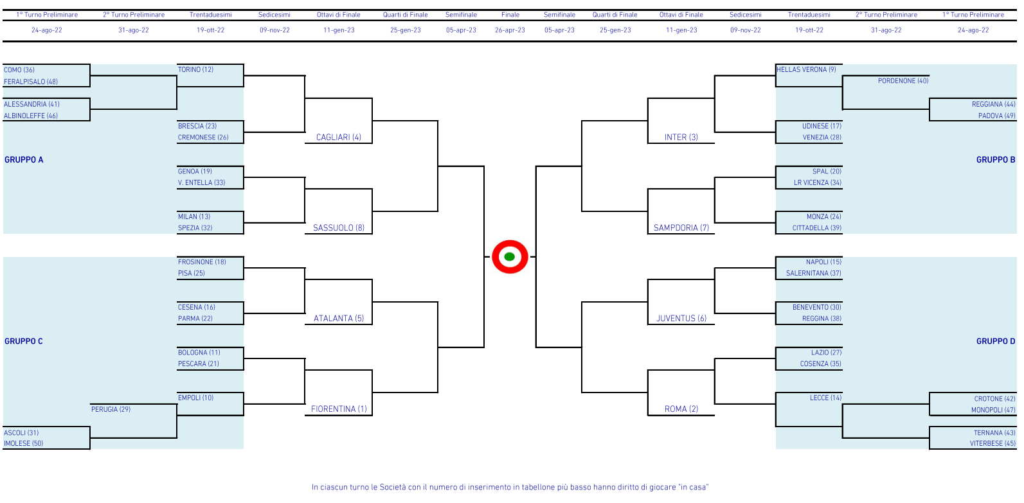 Ya conocemos los emparejamientos, y su respectivo cuadro, de la Coppa Italia Primavera 2022-2023. Como es habitual, la Roma no jugará en las primeras rondas de la misma,ya que su competición no dará comienzo hasta la ronda de octavos de final.